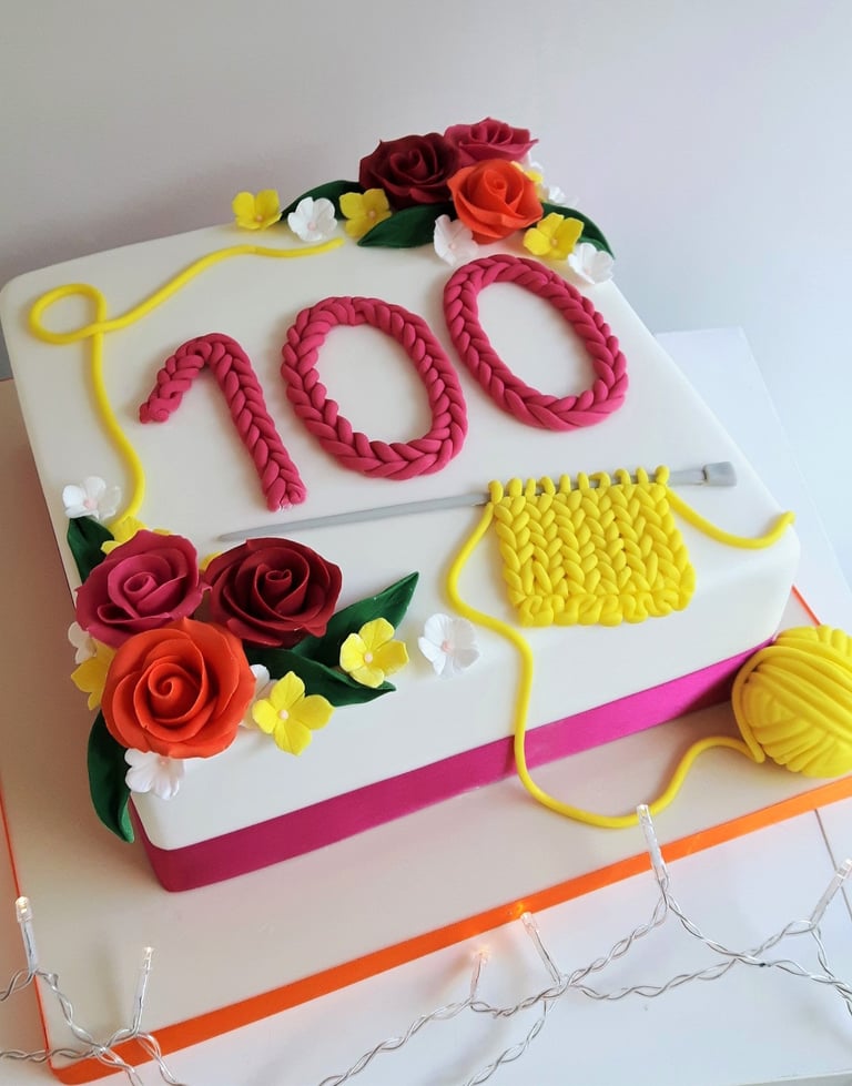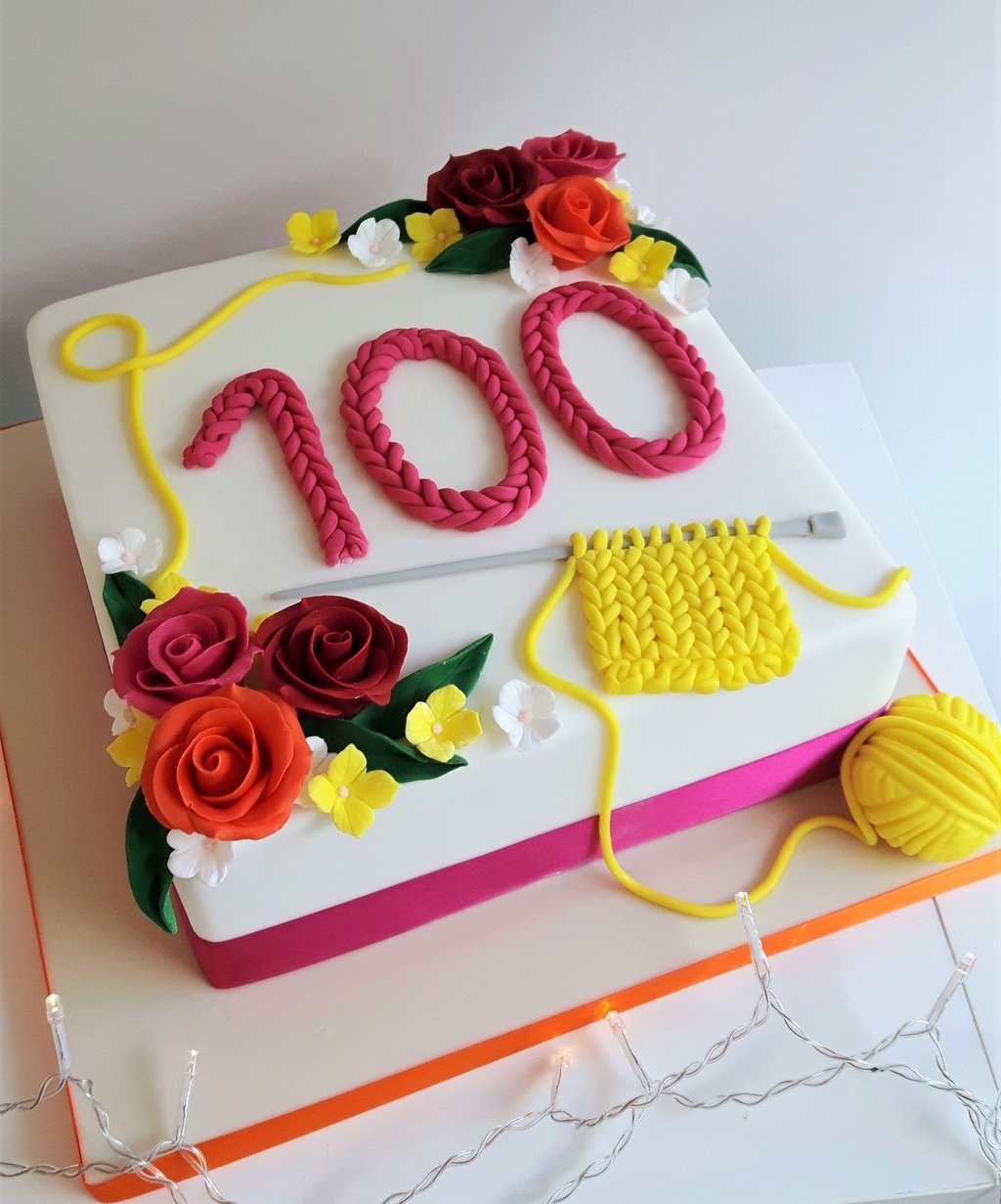 Bold and vibrant colours were chosen to celebrate a wonderful woman who loved knitting and flowers. 100 years. Amazing!